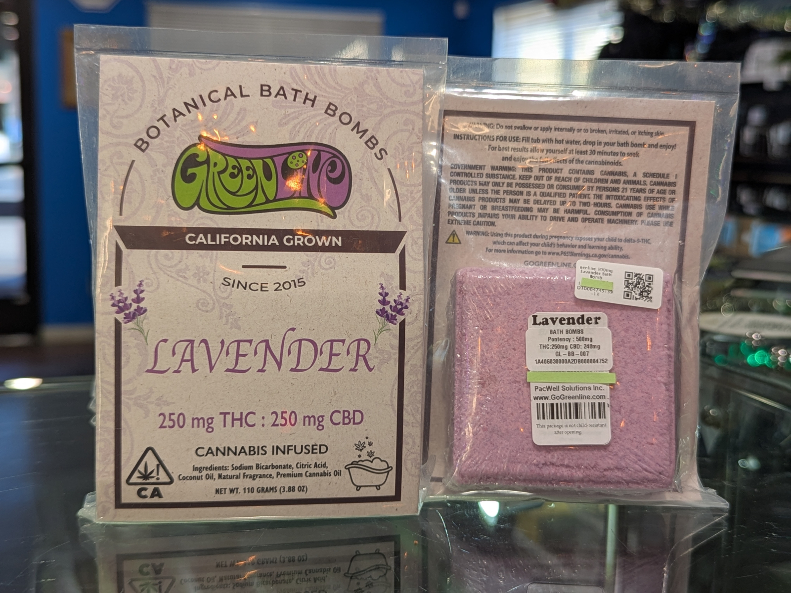 Greenline 500mg Lavender Bath Bomb $20.95 Product Strain Lavender Product Type Topicals Quantity on Hand 11 Product brand Greenline Package UID 1A4060300048D3D004745139 Last Inventory Count Date Sun, 02/08/2026 - 05:04 PM Expiration Date 07/23/2026 NOTE: WE ONLY ACCEPT CASH